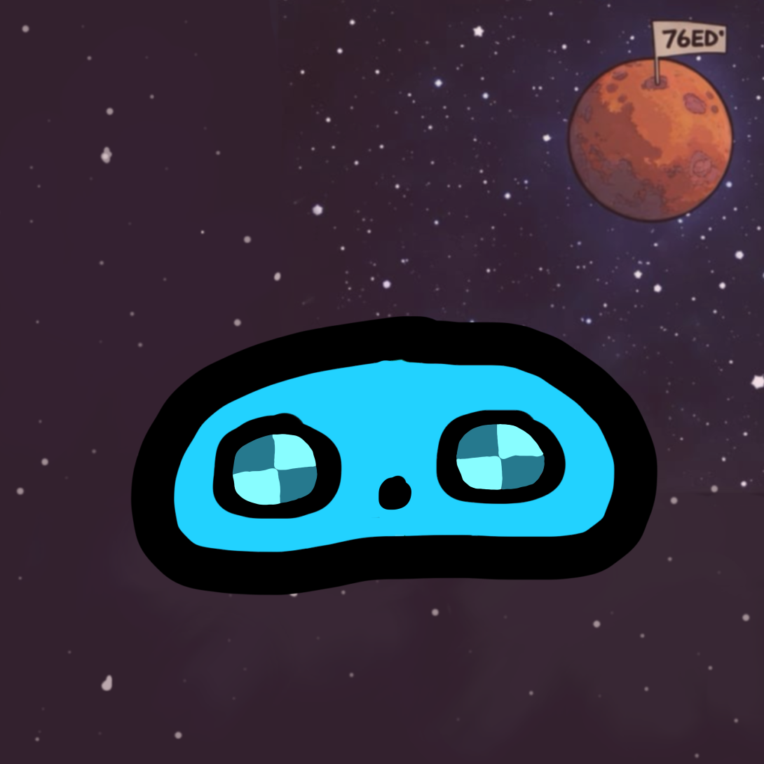 cyan-blue cosmic variant with quadrant eyes. rare nod to the unknown in the 76ED universe.
