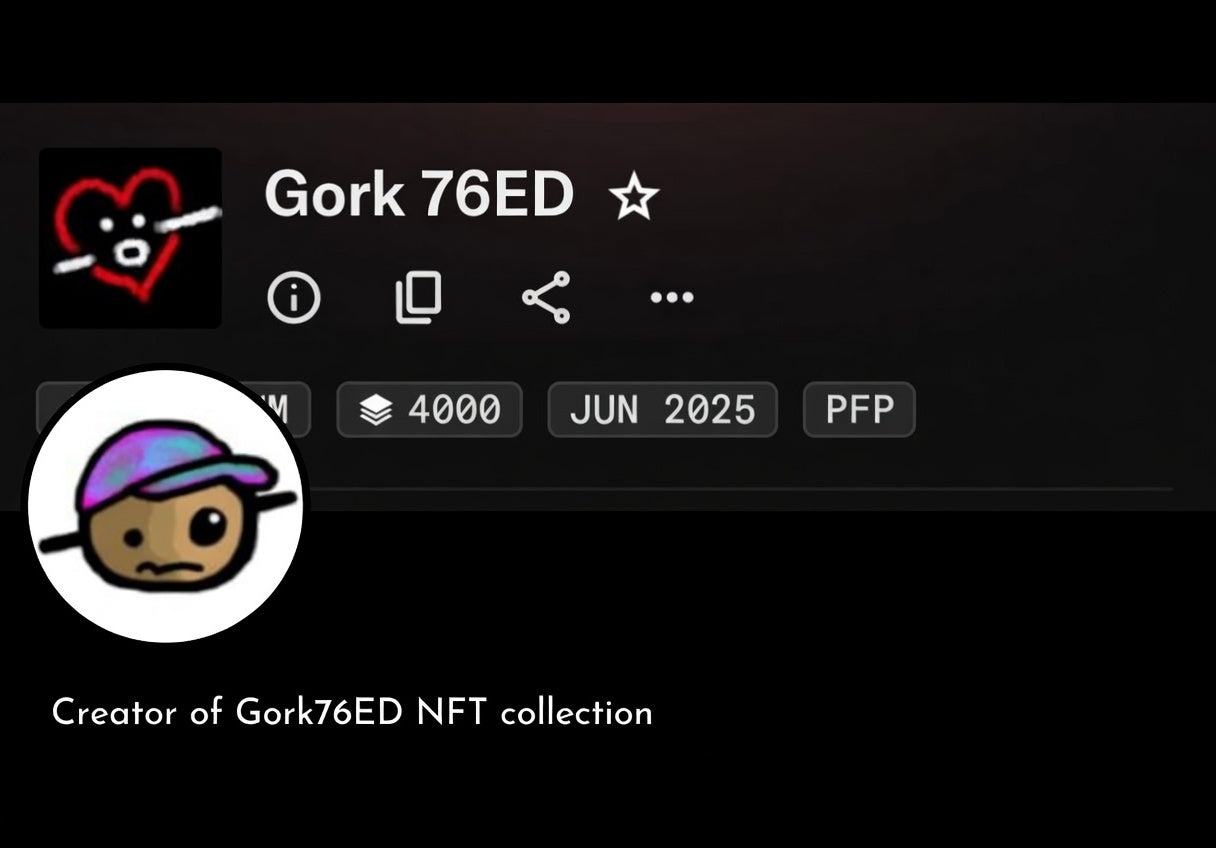 Hey 76ED fam, I am the creator behind the Gork76ED NFT collections.